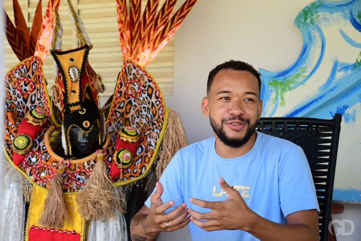 Com o tema delimitado, João começa a construir o desfile com base, também, nas normas da Liga das Escolas de Samba. “A gente divide altas, comissão de frente, musas, destaques e tudo que faz parte do processo de criação. Eu estou envolvido em tudo”, disse ele ao GD ao lado de fantasias e peças de alegoria que estão na sala de sua casa, no Capão Grande, em Várzea Grande.