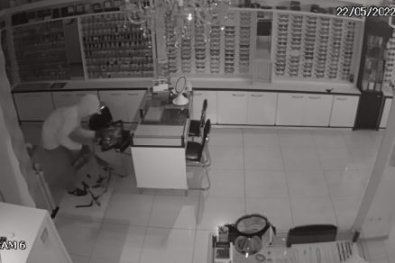 Um assaltante foi flagrado por câmeras de segurança invadindo uma joalheria e ótica, no Centro de Tangará da Serra (a 250 km de Cuiabá). O crime ocorreu na madrugada deste domingo (22).