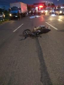O casal seguia de moto sentido centro ao bairro, quando foi atingido por uma carreta e caiu no asfalto. Outro caminhão que seguia logo atrás também bateu nas vítimas, porém o condutor fugiu sem prestar socorro.