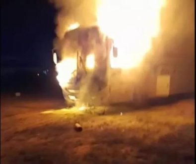 Um ônibus de locações e fretamento pegou fogo no pátio de uma empresa, no Bairro Santa Maria, em Alta Floresta, a 800 km de Cuiabá, na noite dessa quinta-feira (12), após um curto-circuito no sistema de partida do veículo.